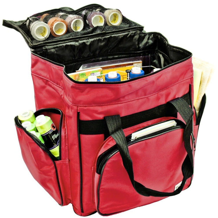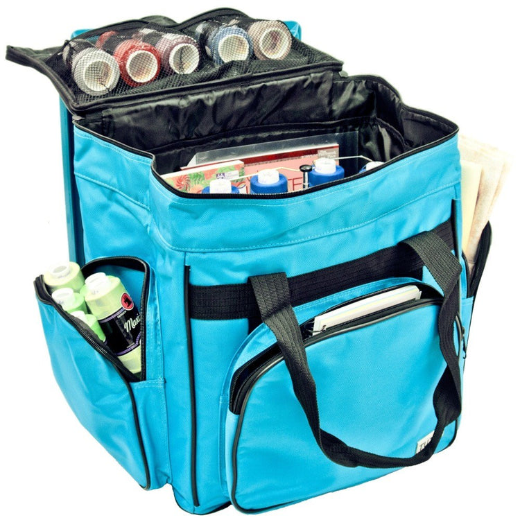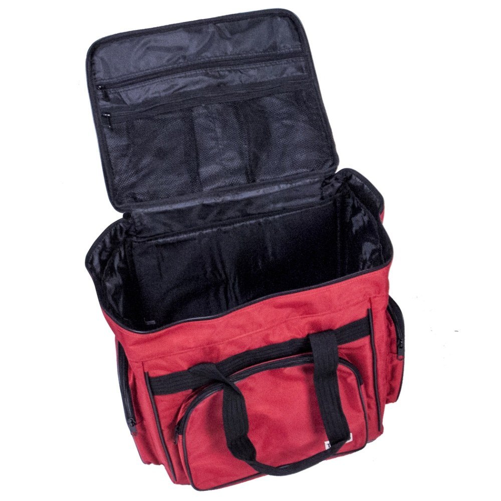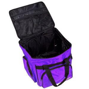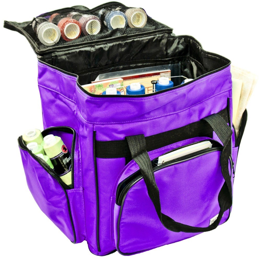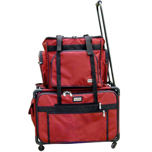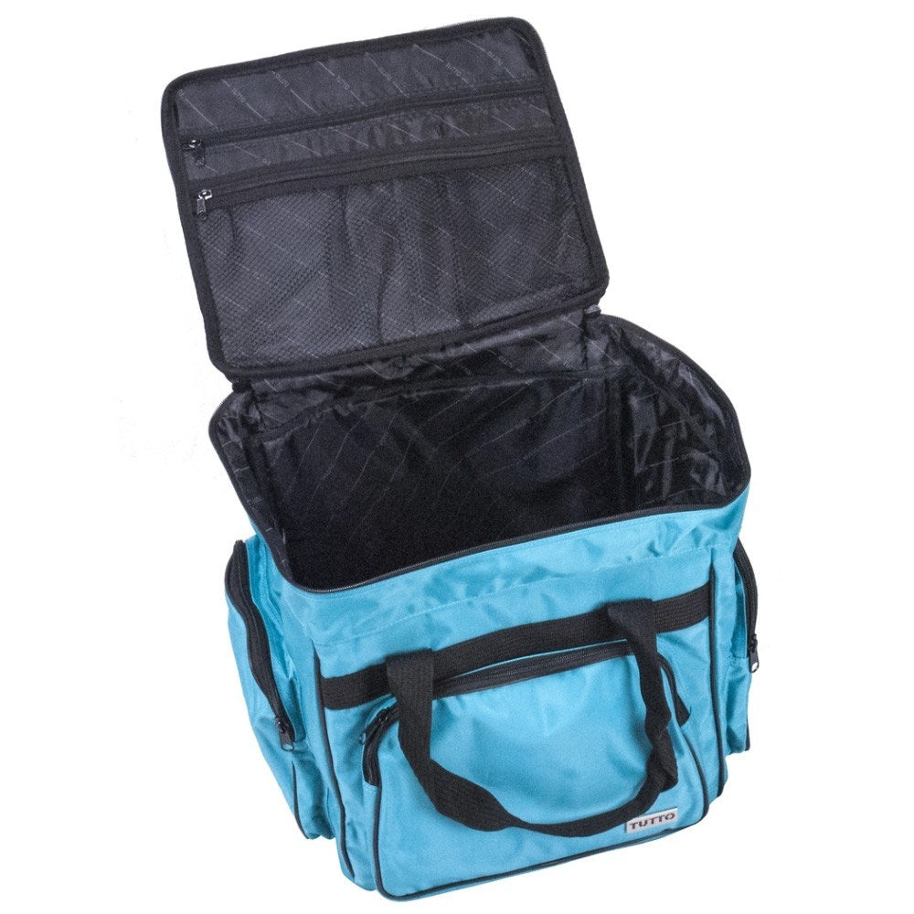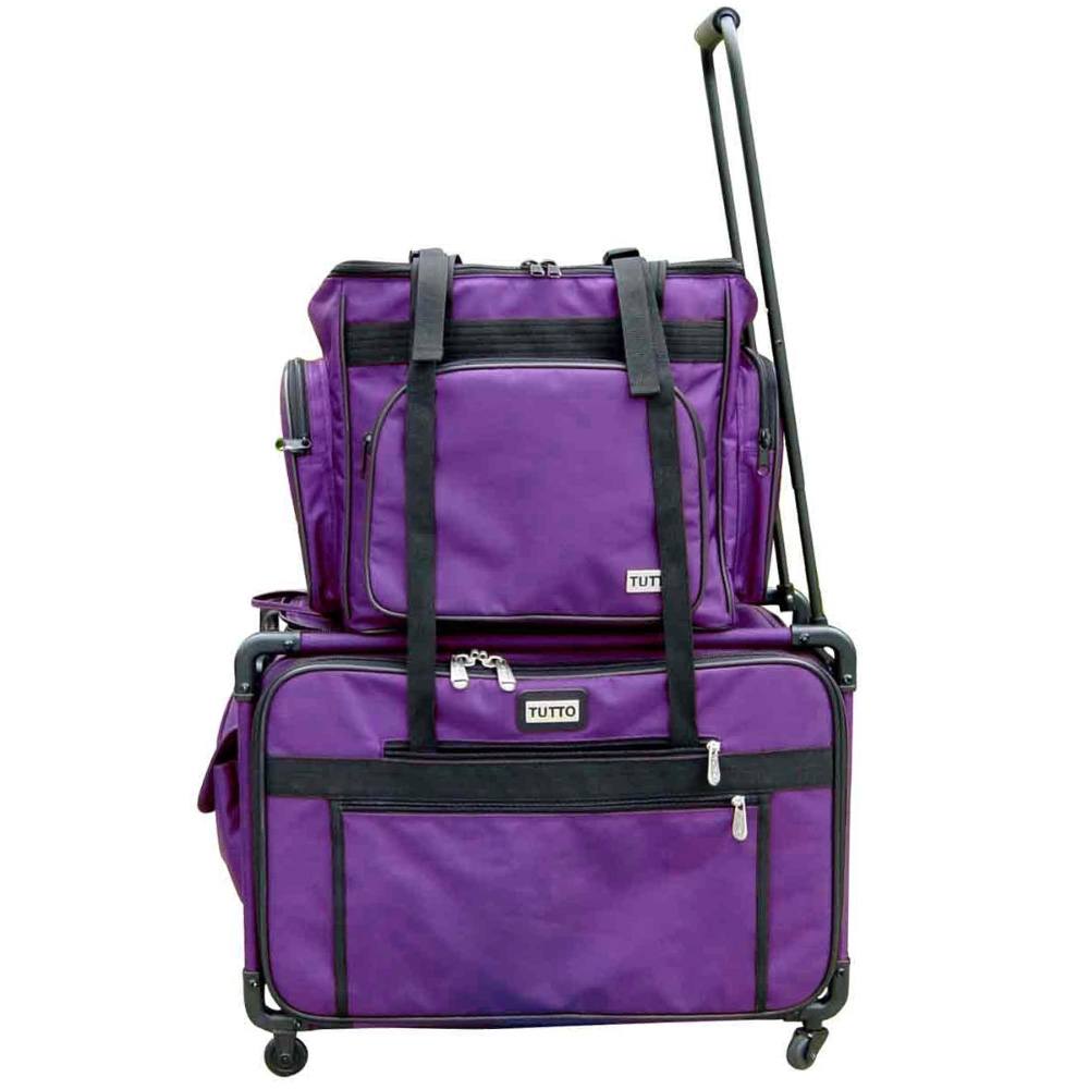 These versatile carrying cases are ideal for sewists on-the-go as well as travelers. Measuring 14-1/2in long by 14-1/2in high by 10-1/2in deep, this padded carrying case is ideal for storing and transporting your serger or small sewing machine. When your Tutto case is not in use it can be folded up for easy storage. Padded walls protect your machine and equipment; while sturdy, nylon straps make transporting safe and easy. All your notions, sewing supplies, and tools can be carried with your machine in the many side pockets. Carry your accessory serger bag independently or stack it on any Tutto wheeled case for easier transportation.