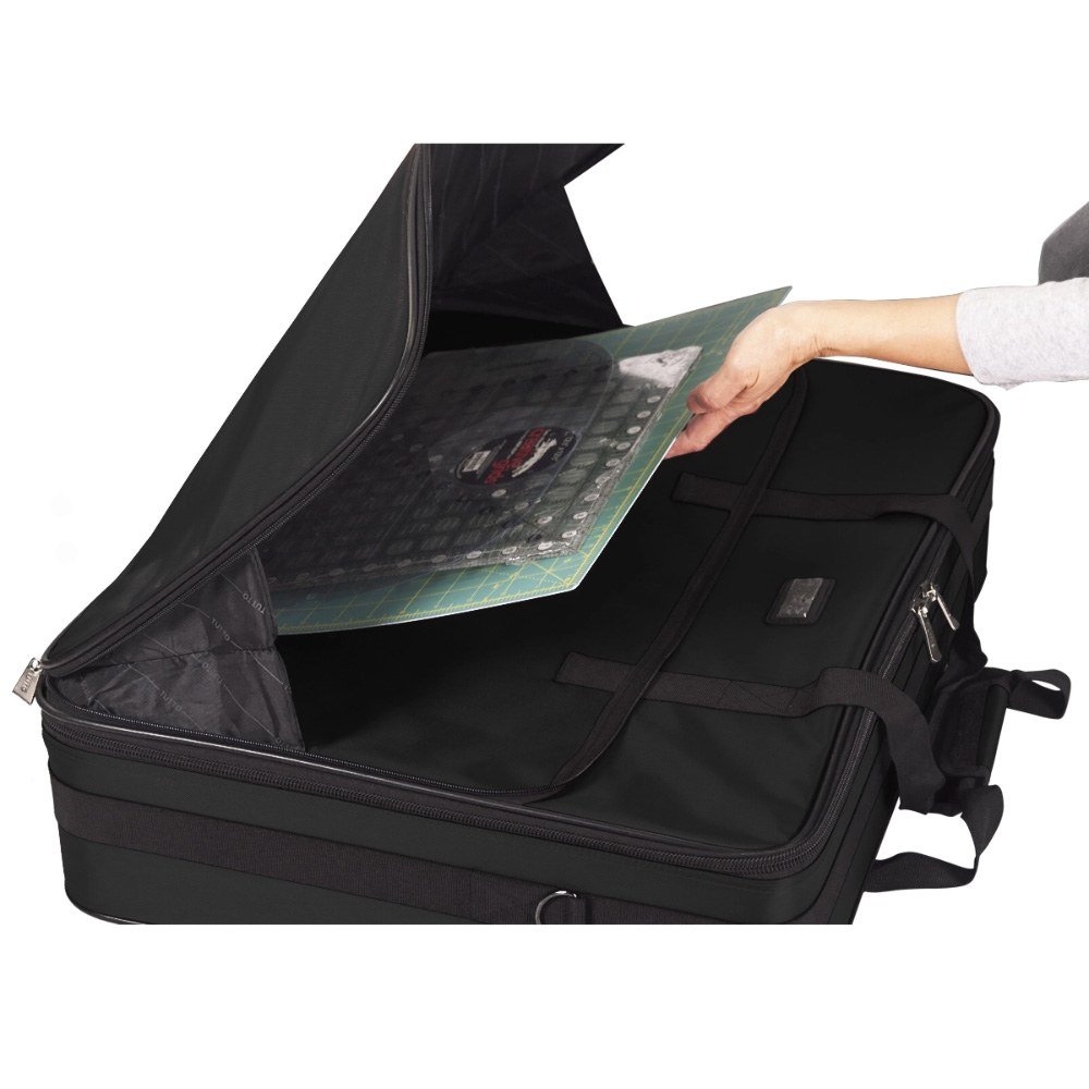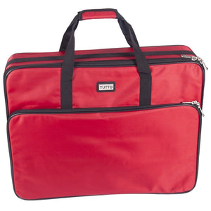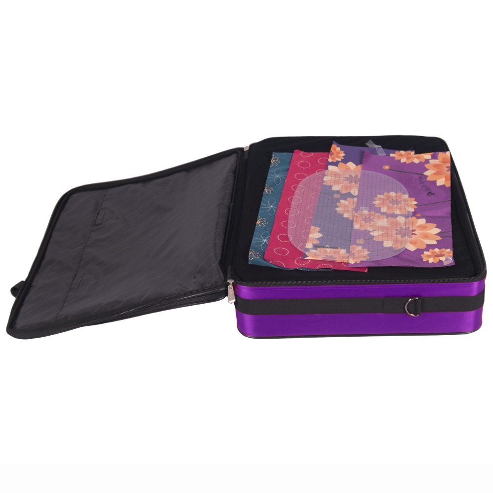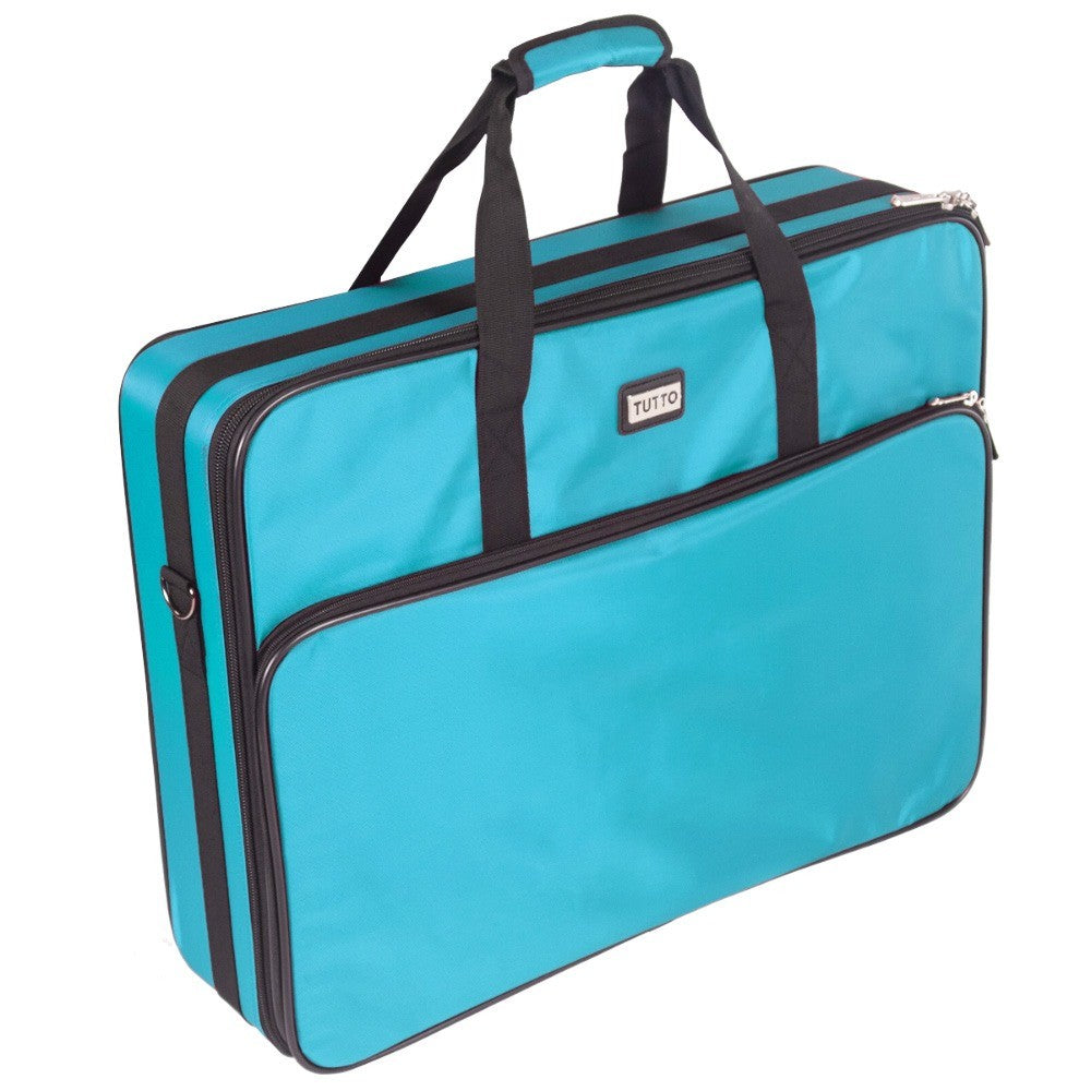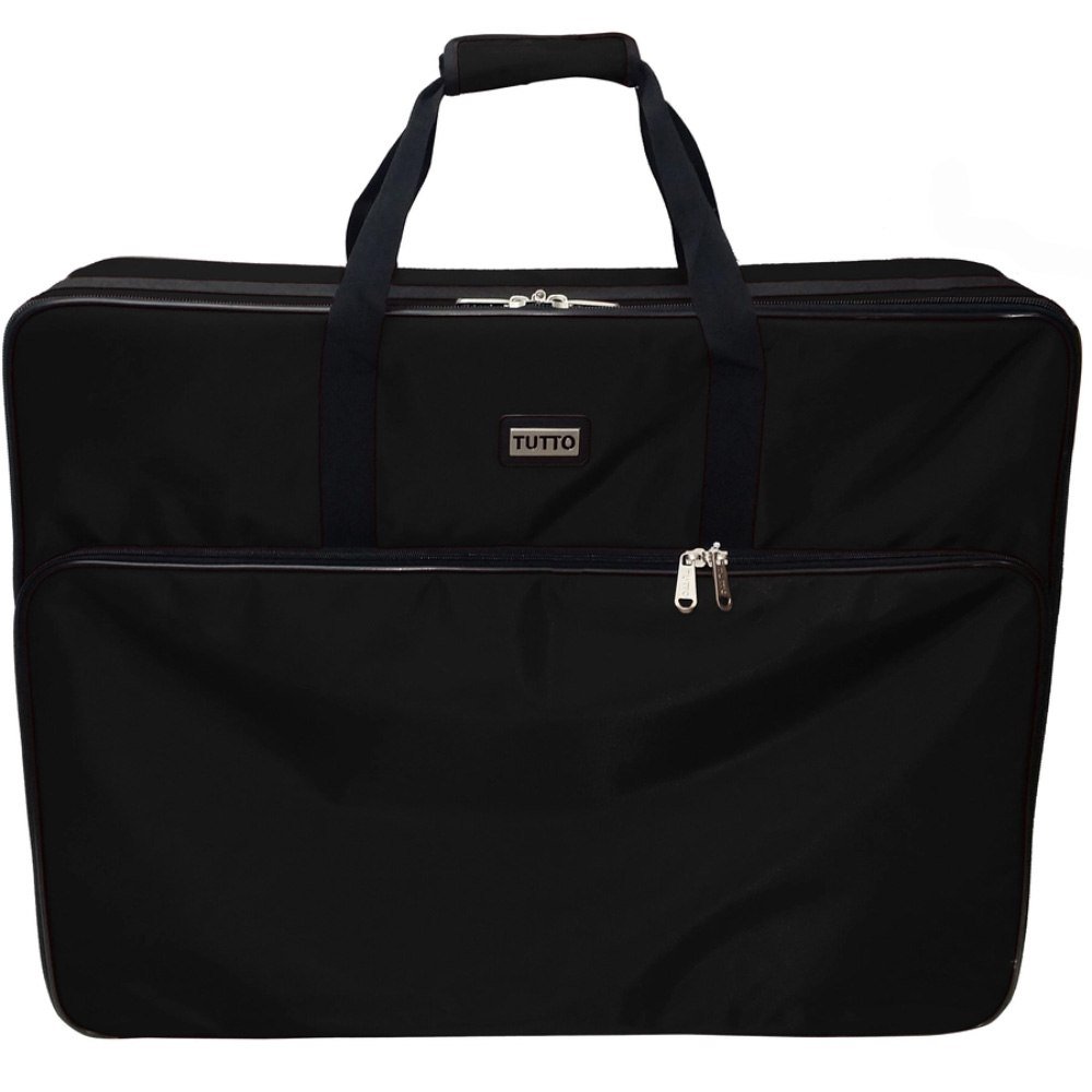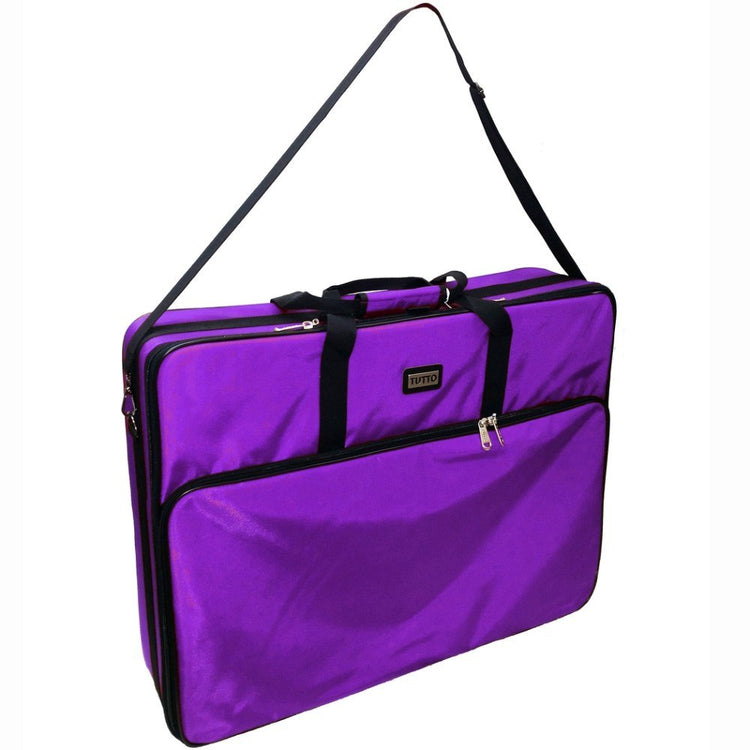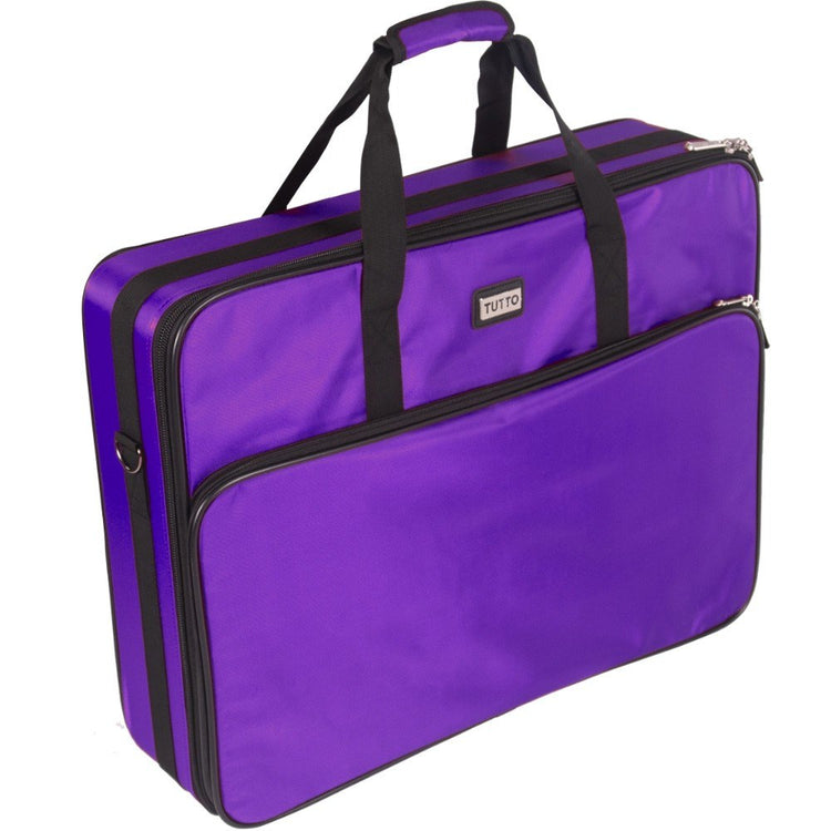 These versatile carrying cases are ideal for sewists on-the-go as well as travelers. Measuring 28in long by 22in high by 6in deep, this padded carrying case is ideal for storing and transporting embroidery units, hoops, laptops, and more. The walls are padded with honeycomb board and high-density foam to protect your equipment. The convenient front pocket is ideal for storing notions and sewing supplies. Carry your embroidery project bag independently or stack it on any Tutto wheeled case for easier transportation.