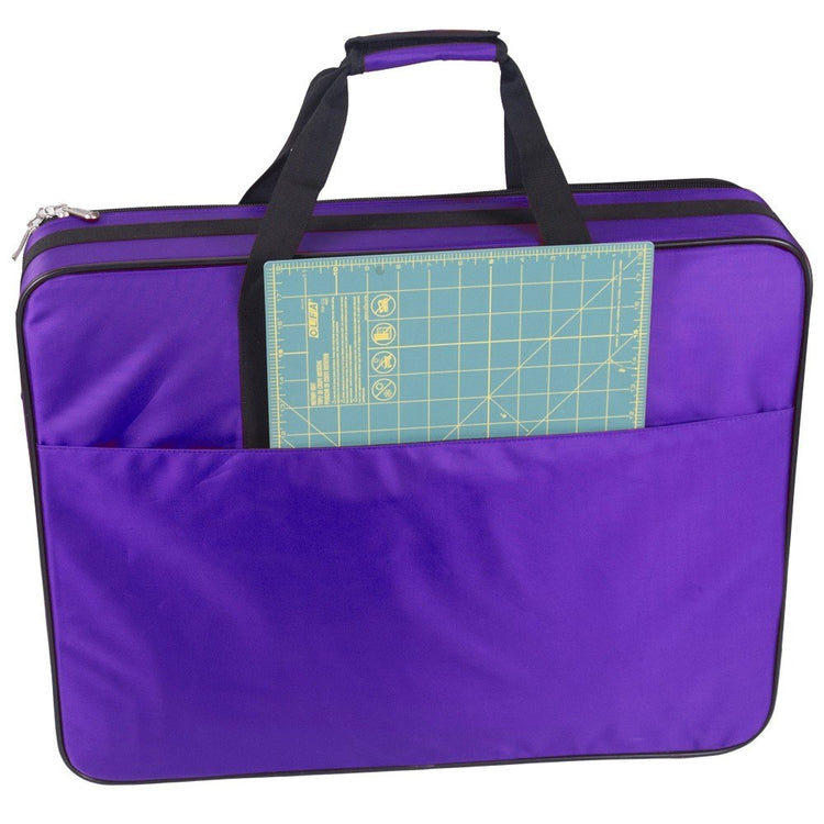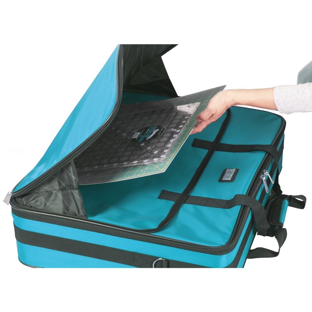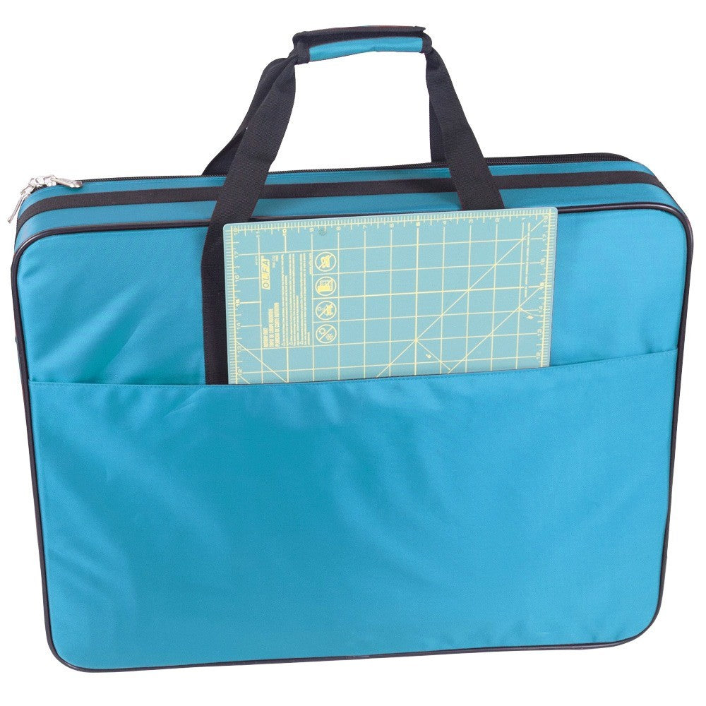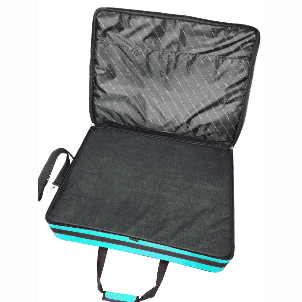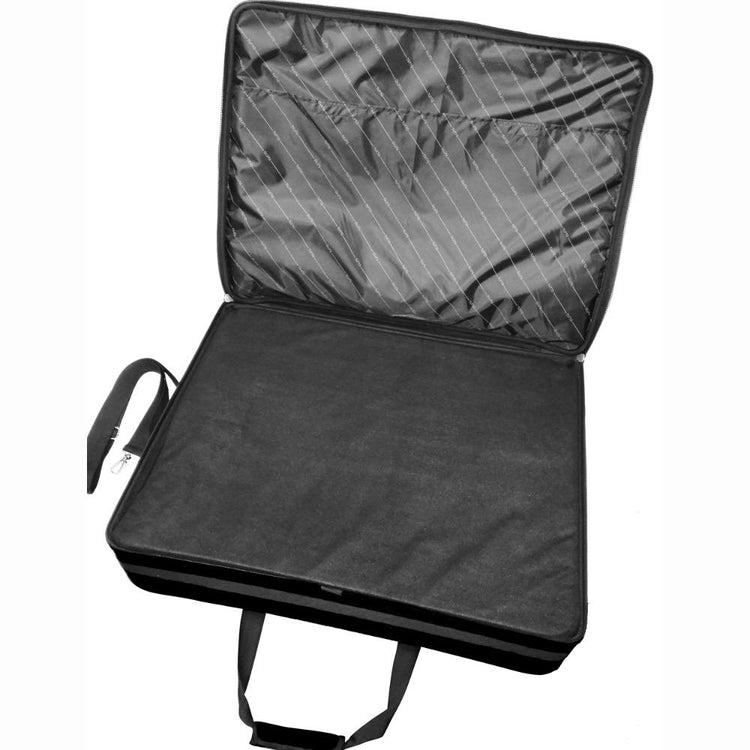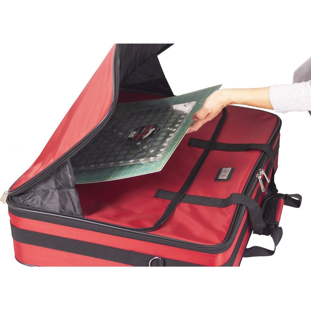 These versatile carrying cases are ideal for sewists on-the-go as well as travelers. Measuring 28in long by 22in high by 6in deep, this padded carrying case is ideal for storing and transporting embroidery units, hoops, laptops, and more. The walls are padded with honeycomb board and high-density foam to protect your equipment. The convenient front pocket is ideal for storing notions and sewing supplies. Carry your embroidery project bag independently or stack it on any Tutto wheeled case for easier transportation.