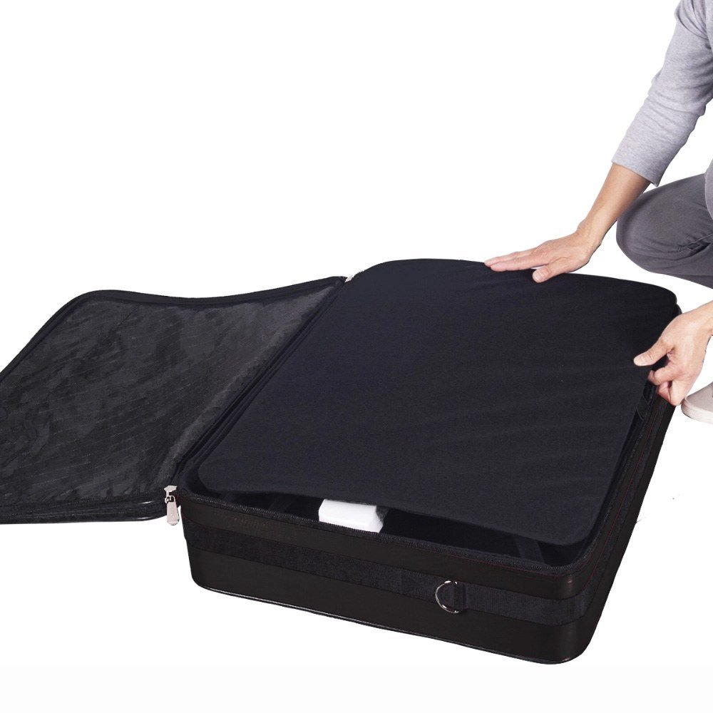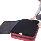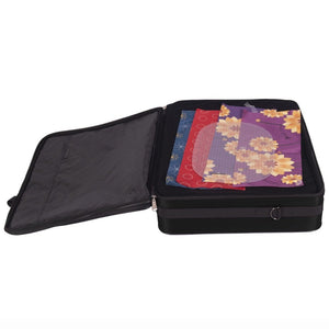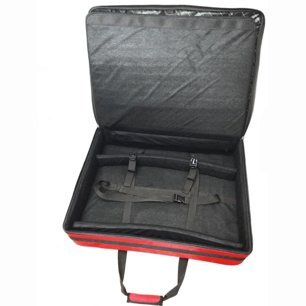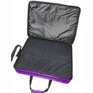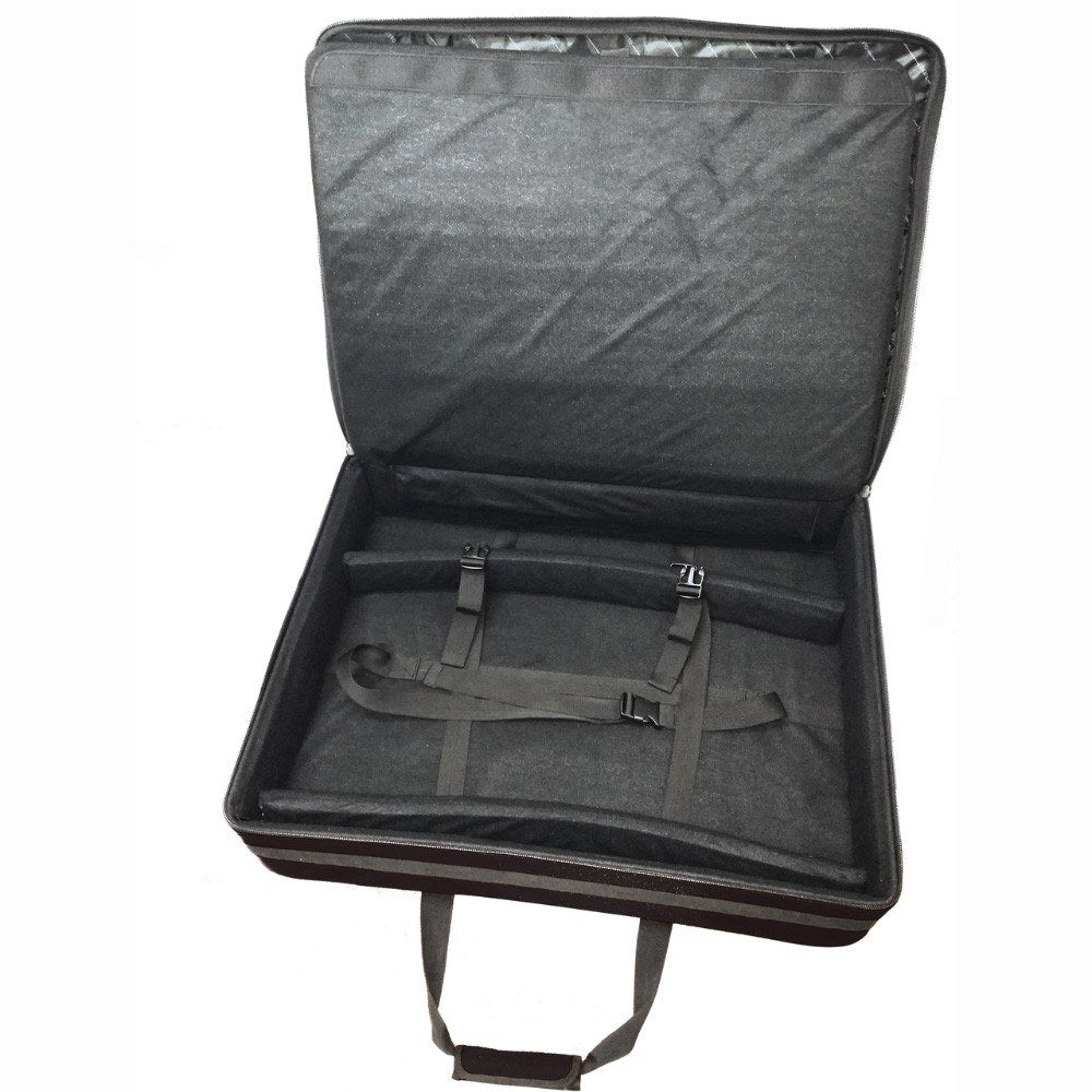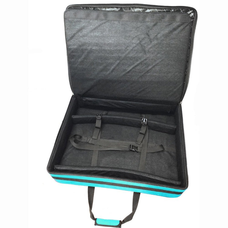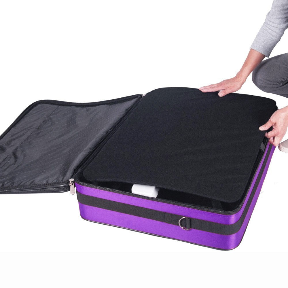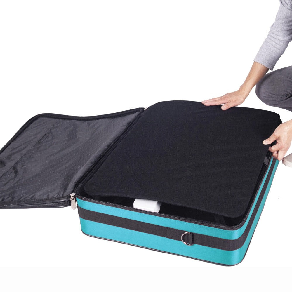 These versatile carrying cases are ideal for sewists on-the-go as well as travelers. Measuring 28in long by 22in high by 6in deep, this padded carrying case is ideal for storing and transporting embroidery units, hoops, laptops, and more. The walls are padded with honeycomb board and high-density foam to protect your equipment. The convenient front pocket is ideal for storing notions and sewing supplies. Carry your embroidery project bag independently or stack it on any Tutto wheeled case for easier transportation.