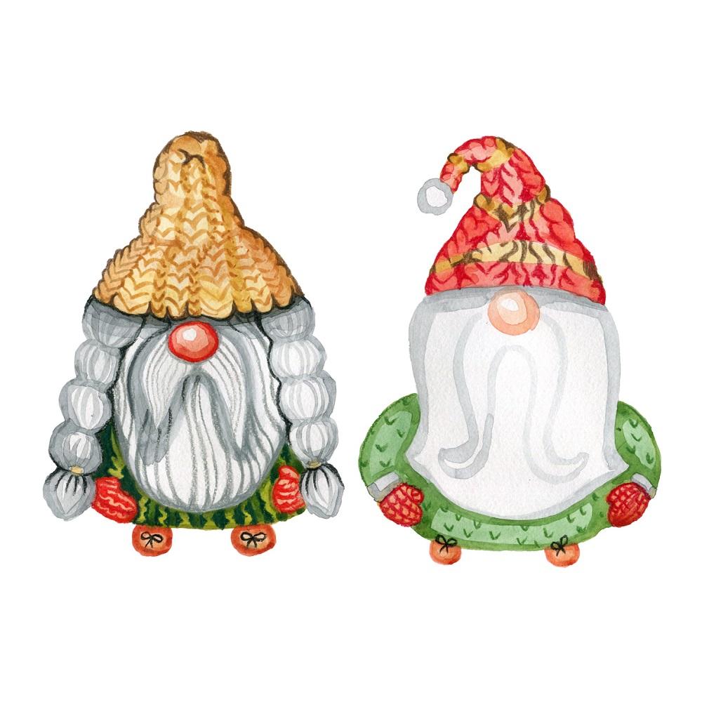 Two Cute Scandinavian Gnomes Fabric Panel Details