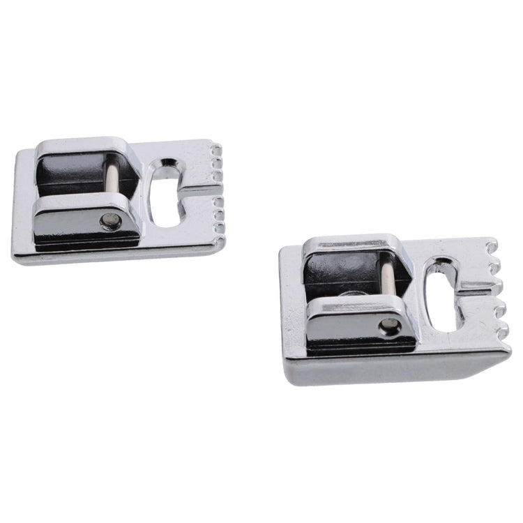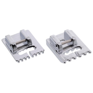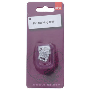 The Pin Tucking Feet Set allows for essential perfect pintucks, evenly spaced and parallel rows. Twin needle pintucks are often a lovely focal point in both modern and heriloom style projects. These feet guarantee a perfect result for narrow and/or wide pintucks. Two feet included, wide and narrow.