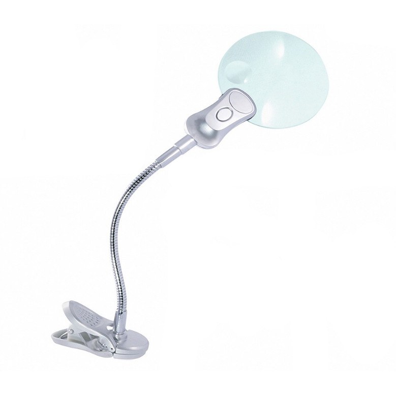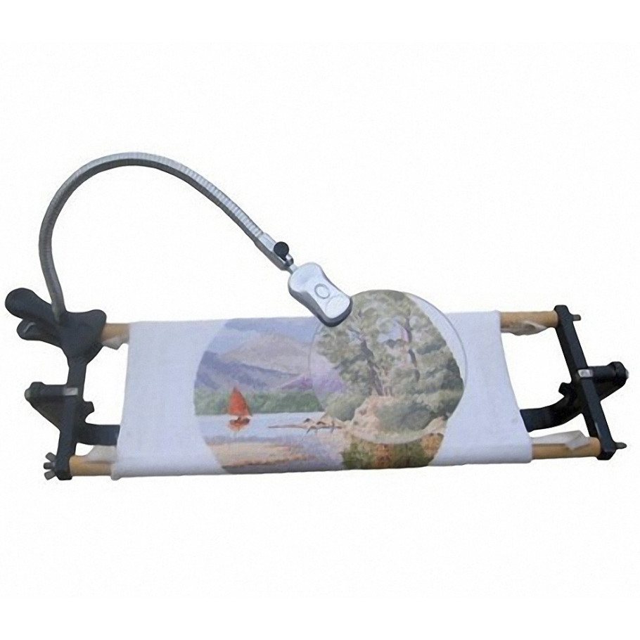 The Ultra 2X Magnifier with LED Lamps is a must-have tool for any sewists, crafter, and repairman. Two ultra bright LED lamps will illuminate your work area while the 5in, rimless magnifier lens provides 1.75x magnification. The Ultra 2X Magnifier with LED Lamps features a spring-loaded clamp which allows you to quickly attach it to tables, hoops, and quilt frames. The 16-inch long neck is completely flexible; adjust it to place the light precisely where you need it. The Ultra 2X Magnifier with LED Lamps is the perfect tool to increase visibility and reduce eye strain. Batteries included!