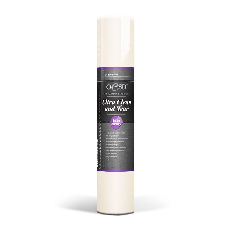 High quality, ultra clean & tear stabilizer from OESD. This is the ideal stabilizer for embroidering quilts made of 100% cotton. This medium weight stabilizer can withstand medium to high stitch count designs on woven fabrics. Sturdy enough to be run through a printer, Ultra Clean & Tear can be used for foundation piecing. Tear away easily or allow ultra clean to wash away over time. Each roll contains 10 yards of 20 inch wide stabilizer.
