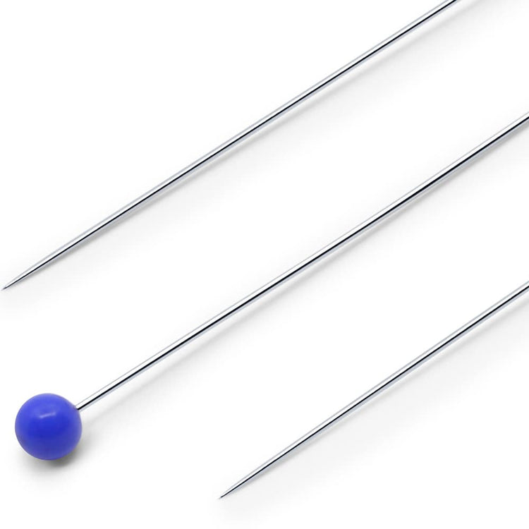 These fine Glass Head Pins are heat-resistant and can be ironed over without damaging the fabric. Each pin measures 1-3/8" long and are made of nickel-plated steel with a .04mm shaft. Use these on delicate materials and machine piercing. They come in a reusable plastic container and each pack contains 150 Glass Head Pins.