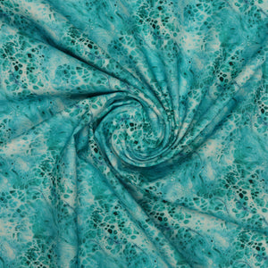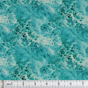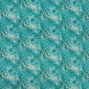 Ocean Turquoise is a soothing, wave-inspired print that captures the essence of tropical shallows and sunlit surf. Gentle shades of turquoise and seafoam flow together in a marbled design, accented by delicate veining and frothy, bubble-like textures. The result is a soft, airy pattern full of movement—perfect for evoking calm coastal energy in quilts, home décor, or beach-ready accessories. Whether used as a feature fabric or a subtle blender, Ocean Turquoise brings a fresh, aquatic feel to any project.