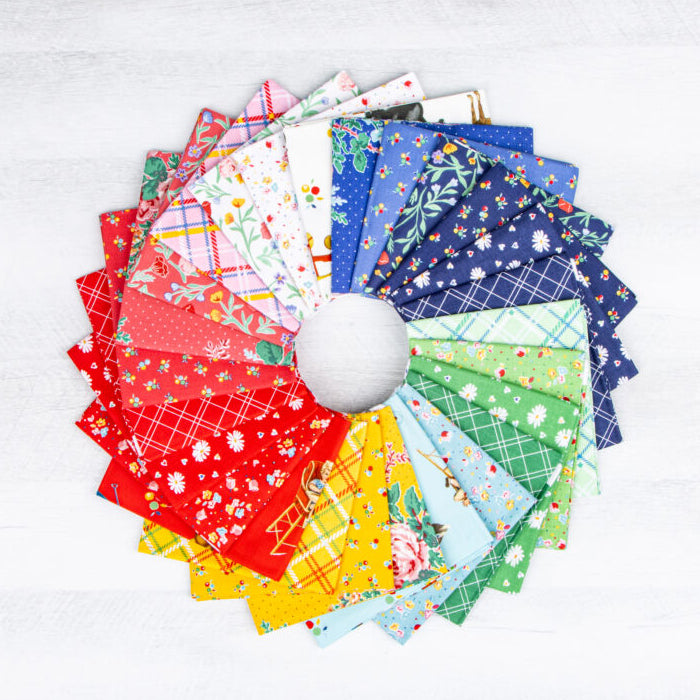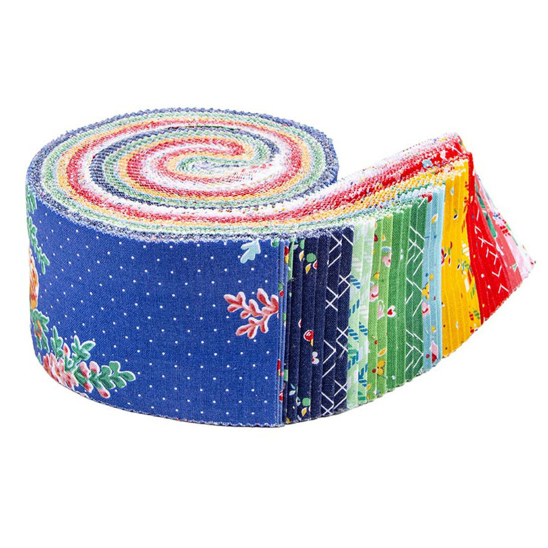 The Simple Pleasures Rolie Polie celebrates the heartwarming beauty of everyday joys—those sweet, fleeting moments that make life feel full and bright. With 40 precut 2.5" x 44" strips of 100% premium cotton, this bundle captures a charming blend of florals, plaids, vintage toys, and nostalgic prints that evoke sunlit kitchens, cheerful gardens, and cozy playtime afternoons. Its palette of reds, yellows, greens, blues, and soft whites evokes the simple happiness of childhood wonder—picking daisies, chasing butterflies, or baking something warm and sweet. Perfect for quilts, borders, or any sewing project that needs a touch of whimsy, this collection reminds us that sometimes, the most beautiful things come from life's simplest pleasures. Please note fabric roll may change depending on availability.