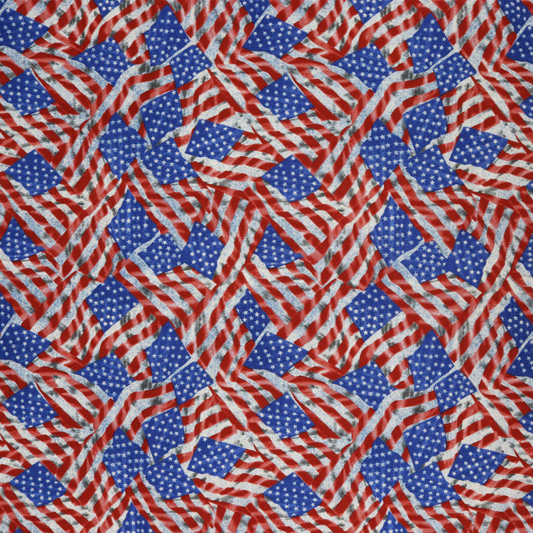 Celebrate American pride with the US Military Fabric Collection – Flag Allover print. This vibrant design features a dynamic, all-over arrangement of waving US flags in bold red, white, and blue. The overlapping banners create a sense of movement and energy, perfect for patriotic projects that demand attention. Whether you're crafting a Fourth of July quilt, decorating for a military homecoming, or honoring a veteran with a handmade gift, this fabric delivers timeless national spirit in every inch. A bold and classic choice for Americana-themed sewing and quilting.