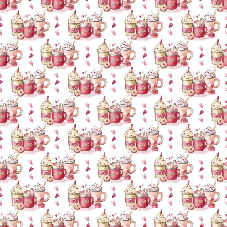 The White Valentines Coffee Allover Fabric is part of the Valentine's Coffee Fabric Collection printed by Sew Creative Fabrics. Digitally Printed on 100% cotton.