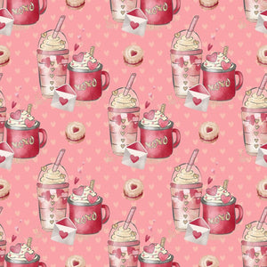 The Pink Valentines Coffee on Tan Hearts Fabric is part of the Valentine's Coffee Fabric Collection printed by Sew Creative Fabrics. Digitally Printed on 100% cotton.