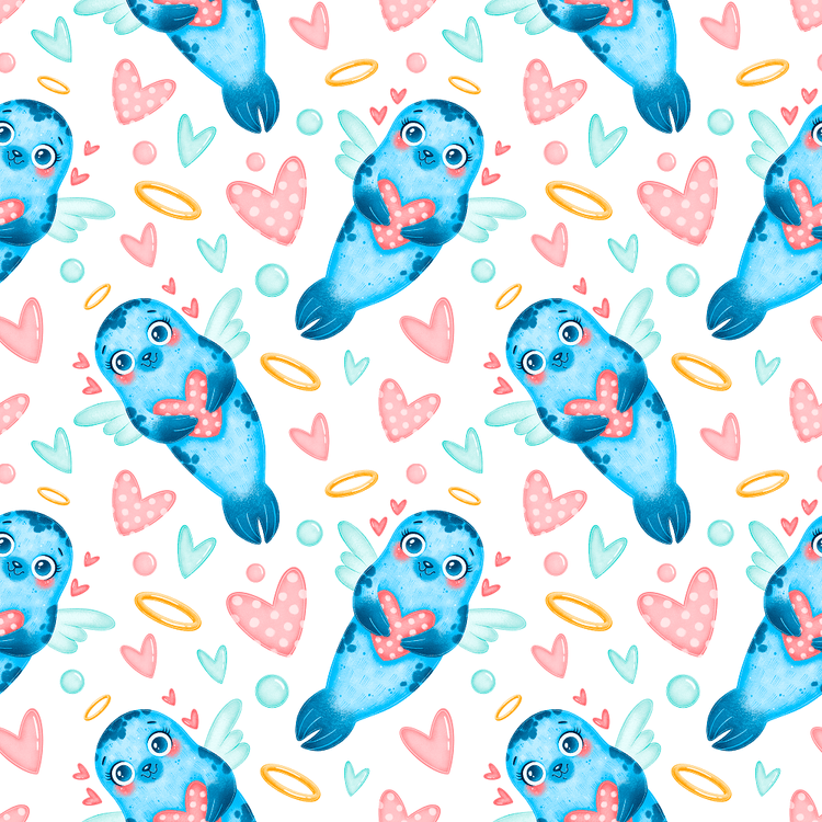 The Valentine's Day Seals Fabric is part of the Valentine's Day Animals Fabric Collection printed by Sew Creative Fabrics. Digitally Printed on 100% cotton.