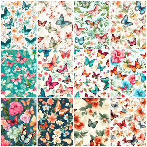 Vibrant Watercolor Butterflies Fat Quarter Bundle - 12 Pieces