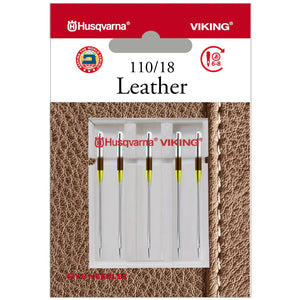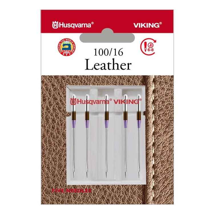 HUSQVARNA® VIKING® Leather Needles are specifically designed for stitching leather, faux leather, suede, and other non-woven materials. Featuring a cutting wedge tip, these needles effortlessly pierce through tough fabrics, creating clean, precise stitches without tearing or damaging the material. Whether you're crafting leather accessories, upholstery, or garments, these needles provide the strength and sharpness needed for professional-quality results. Each pack includes five high-quality needles, available in the following sizes to match different leather thicknesses: