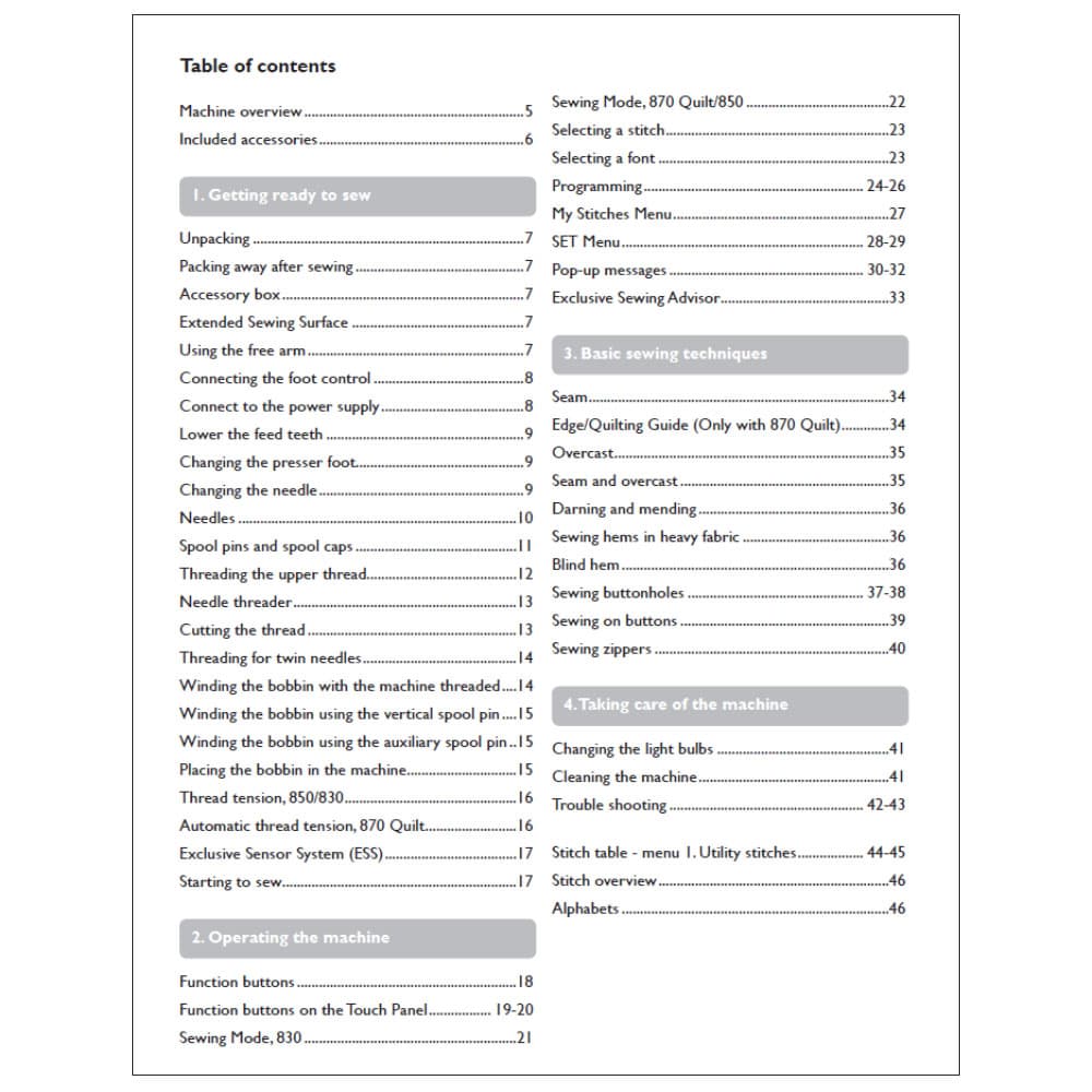 Viking Sapphire 830 Sewing Machine Instruction Manual (Model Sapphire 830) - 48 Pages. Lost your sewing machine's manual? We've got you covered! This instruction manual is the ultimate guide to unlock the full potential of your Viking Sapphire 830. No more confusion or frustration—just clear, concise instructions right at your fingertips. What's inside? Everything you need to know from setting up to mastering your sewing machine and all its features.