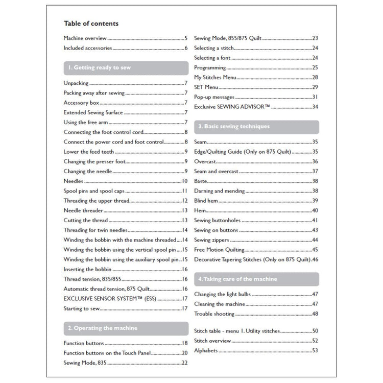 Viking Sapphire 855 Sewing Machine Instruction Manual (Model Sapphire 855) - 56 Pages. Lost your sewing machine's manual? We've got you covered! This instruction manual is the ultimate guide to unlock the full potential of your Viking Sapphire 855. No more confusion or frustration—just clear, concise instructions right at your fingertips. What's inside? Everything you need to know from setting up to mastering your sewing machine and all its features.