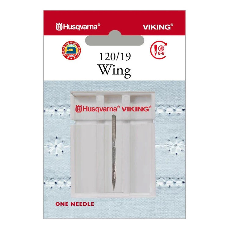 HUSQVARNA® VIKING® Wing Needles are designed for creating beautiful heirloom stitches and decorative embroidery on lightweight woven fabrics. Featuring winged edges on each side of the needle, these specialty needles pierce and gently spread the fabric fibers, forming delicate, open holes that add a touch of elegance to your sewing projects. Perfect for heirloom sewing, eyelets, entredeux, and decorative hemstitching, these needles create stunning, lacy designs on fine fabrics. To get the most from your needles, Viking recommends you change your needle every 6-8 hours or when swapping fabric. They come as single packs and are available in two sizes to suit different fabric weights: