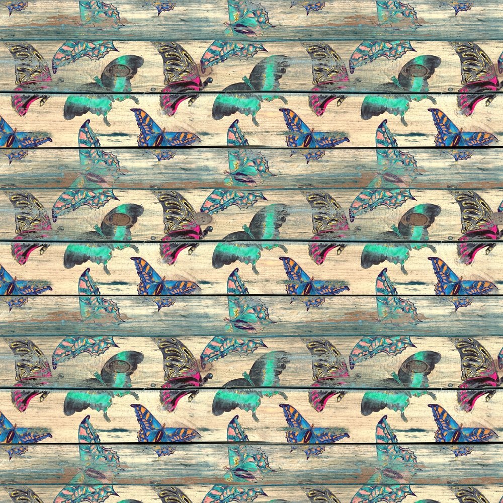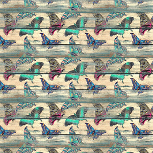 Vintage Butterfly Wood Plank Fabric