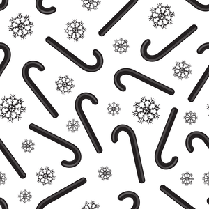 Vintage Candy Cane and Snowflakes Fabric - Black/White