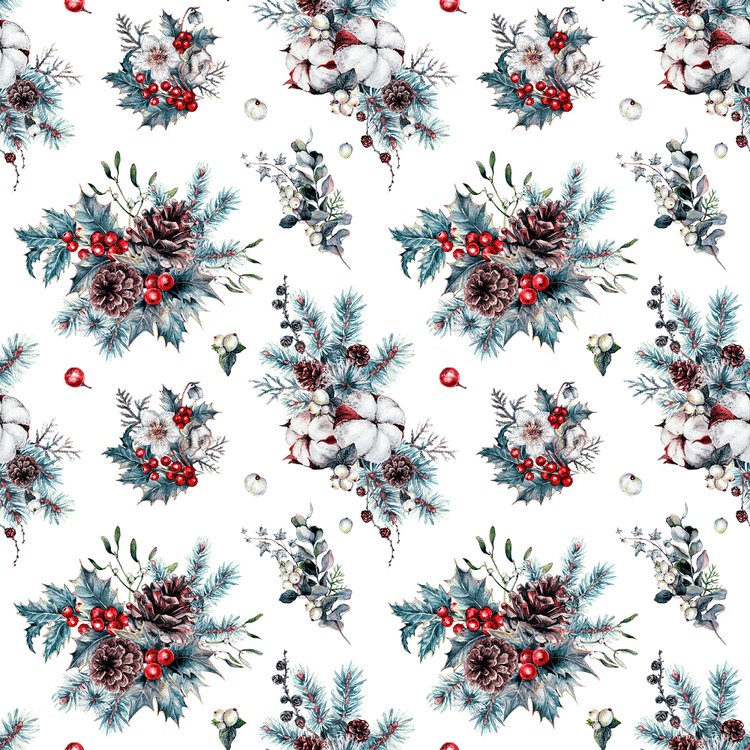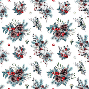 The Vintage Christmas Snowberry Cones and Berries Fabric is part of the Vintage Christmas Fabric Collection printed by Sew Creative Fabrics. Digitally Printed on 100% cotton.