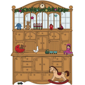 Vintage Cupboard Christmas Advent Calendar Fabric Panel - Brown