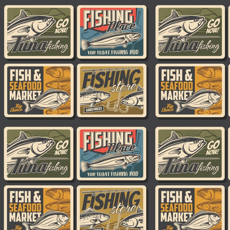 Vintage Fishing Poster Fabric - Multi Details