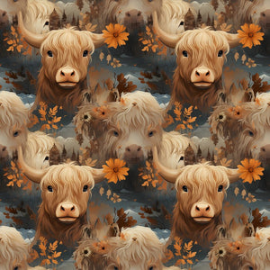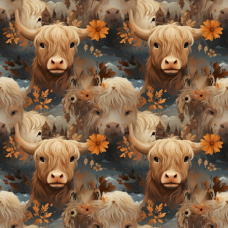 Vintage Highland Cows & Flowers #1 Fabric Details