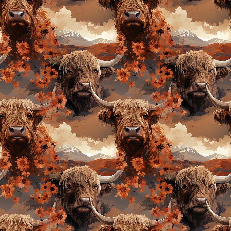 Vintage Highland Cows & Flowers #2 Fabric Details