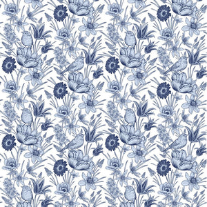 The Blue and White Vintage Spring Flowers and Birds Fabric is part of the Watercolor Floral Fabric Collection printed by Sew Creative Fabrics. Digitally Printed on 100% cotton.
