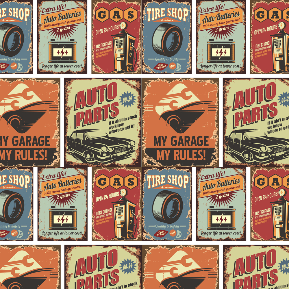 The Multi-Colored Vintage Vehicle Signs Poster Fabric is part of the Vintage Posters Fabric Collection printed by Sew Creative Fabrics. Digitally Printed on 100% cotton.