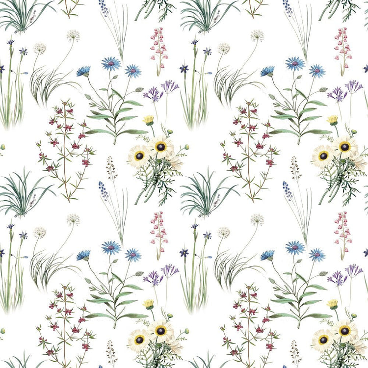 The White Vintage Wildflowers 2 Fabric is part of the Vintage Wildflowers Fabric Collection printed by Sew Creative Fabrics. Digitally Printed on 100% cotton.