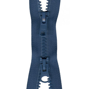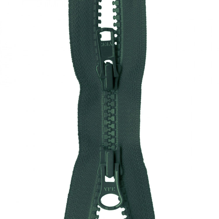 Lightweight, strong, and durable zipper is constructed of chunky Vislon resin-molded teeth that will not freeze or corrode. Great in outdoor wear and polar fleece! 100% Poly Tape. Plastic interlocking teeth (teeth size = 5mm). Separating. Two Slides.