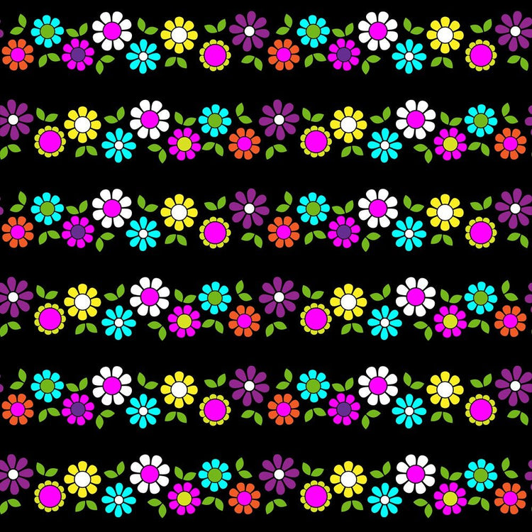 The Vivid Flower Stripes Fabric is part of the Vivid Flower & Paisleys Fabric Collection printed by Sew Creative Fabrics. Digitally Printed on 100% cotton.