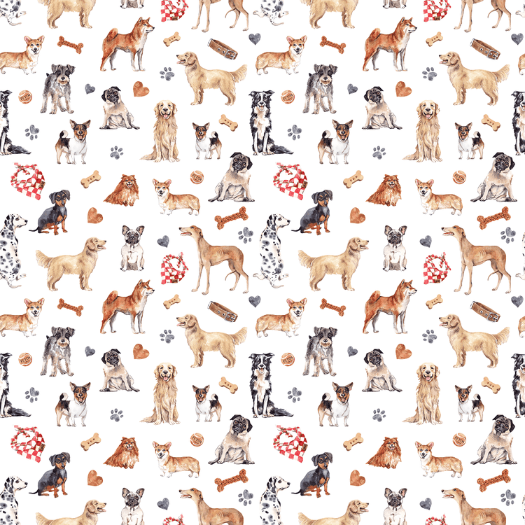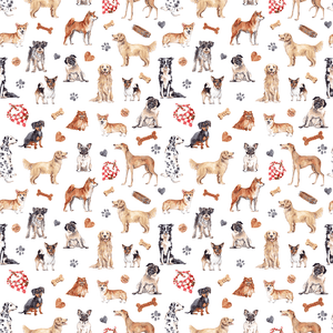 The White Watercolor Allover Dogs Fabric is printed by Sew Creative Fabrics. Digitally Printed on 100% cotton.