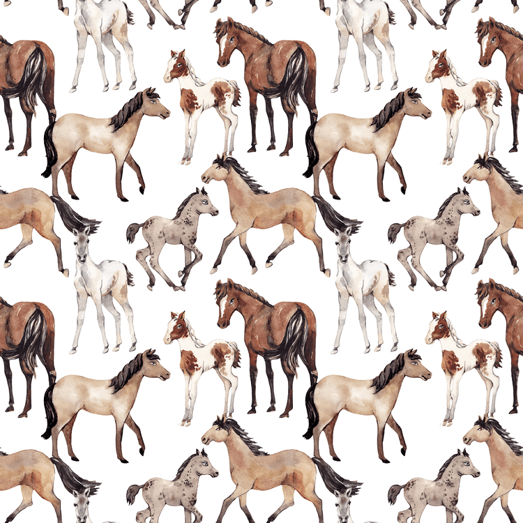 The White Watercolor Allover Horses Fabric is printed by Sew Creative Fabrics. Digitally Printed on 100% cotton.