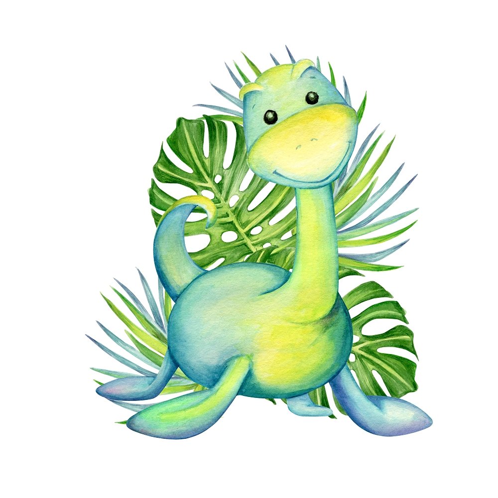 The Watercolor Apatosaurus Fabric Panel is part of the Cute Dinosaur Fabric Collection printed by Sew Creative Fabrics. This panel is digitally printed on 100% cotton. This fabric panel is available in 6 different sizes: