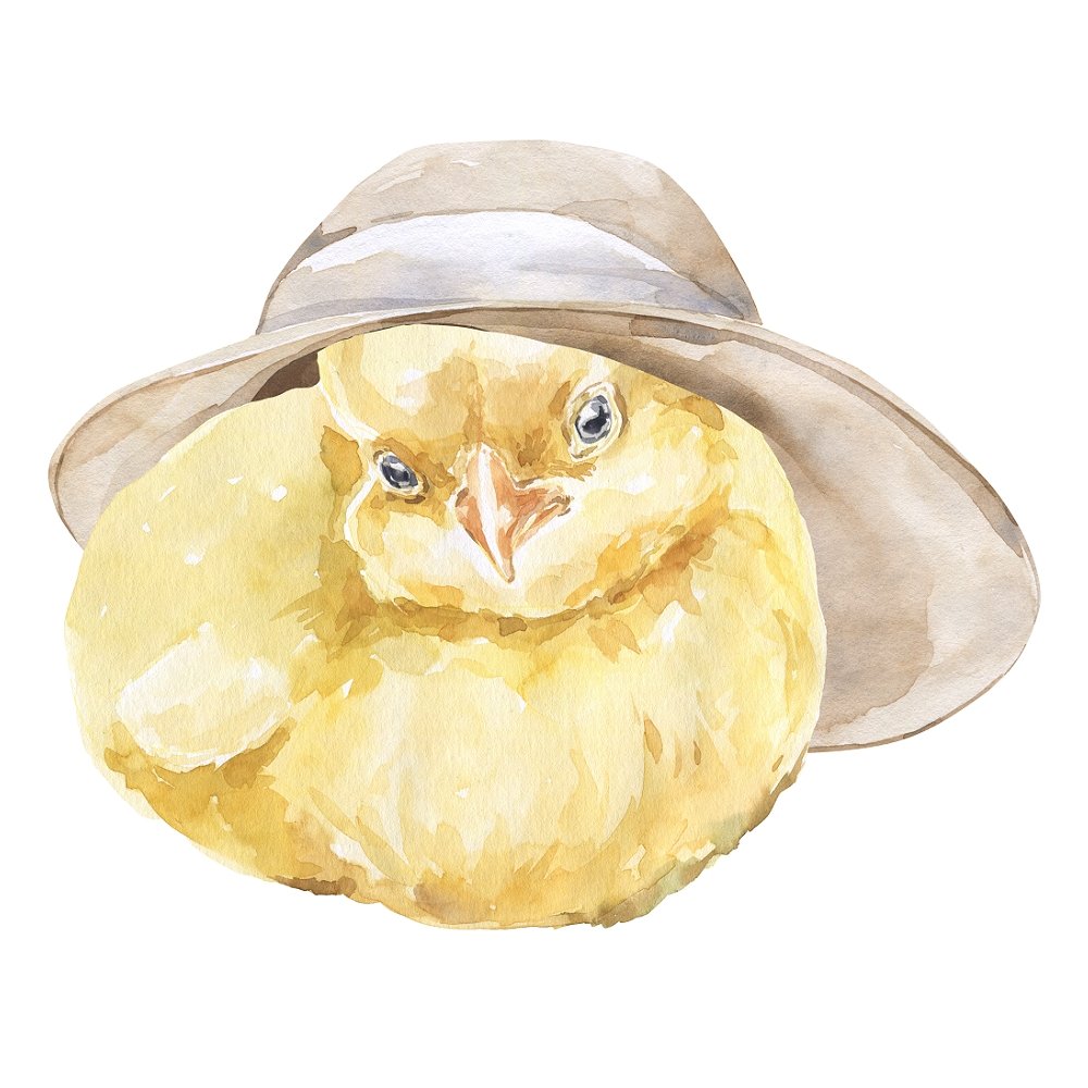 Watercolor Baby Chicken in Hat Fabric Panel Details