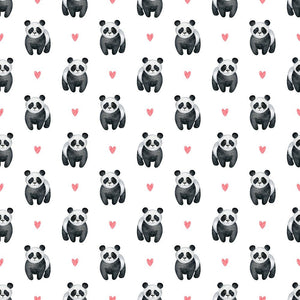 The Watercolor Baby Panda & Hearts Fabric is a part of the Animals Fabric Collection printed by Sewing Parts Online. Digitally Printed on 100% cotton.