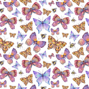 The Watercolor Bees & Butterflies Fabric is a part of the Butterflies Fabric Collection printed by Sew Creative Fabrics. Digitally Printed on 100% cotton and measures 42-43" wide.