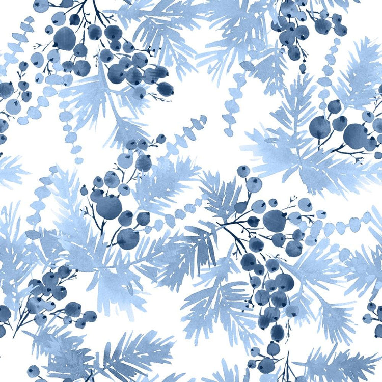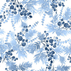 The Watercolor Blue Spruce & Blue Berries Fabric is a part of the Watercolor Christmas Fabric Collection printed by Sew Creative Fabrics. Digitally Printed on 100% cotton.