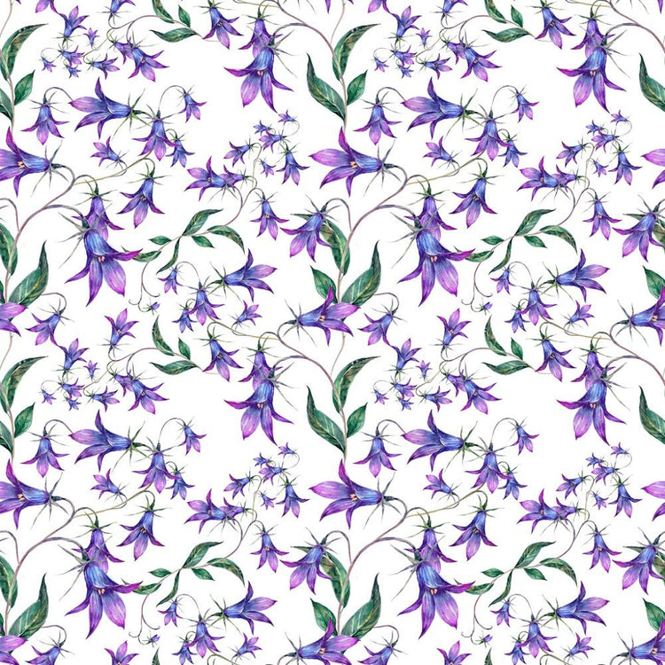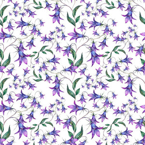 The Watercolor Bluebell Flowers Fabric is a part of the Spring Is Here Fabric Collection printed by Sew Creative Fabrics. Digitally Printed on 100% cotton.