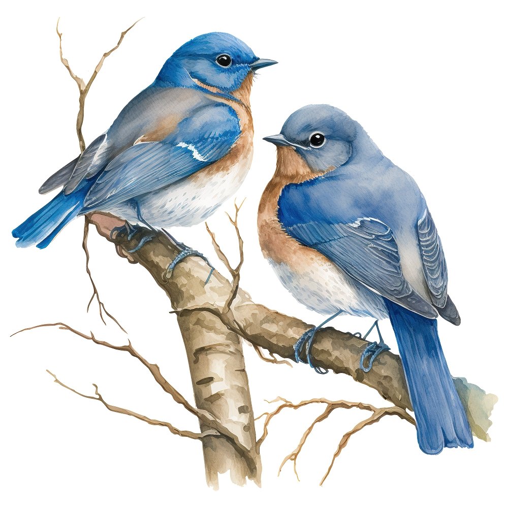 Watercolor Bluebird Scene #1 Fabric Panel