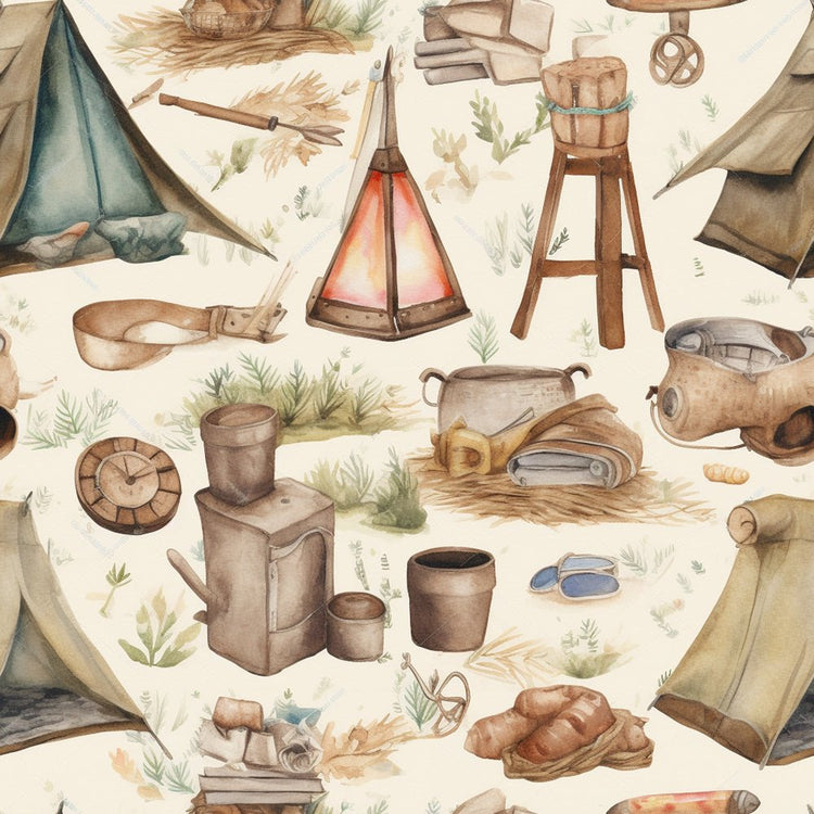The Watercolor Camping Pattern 5 Fabric is printed by Sew Creative Fabrics. Digitally Printed on 100% cotton.