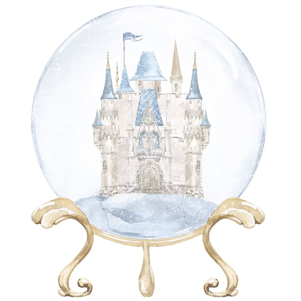 Watercolor Castle In A Snowglobe Fabric Panel Details