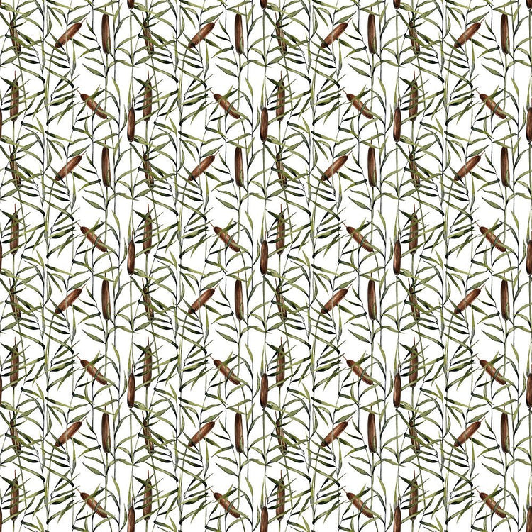 Watercolor Cattail Plants Fabric Details