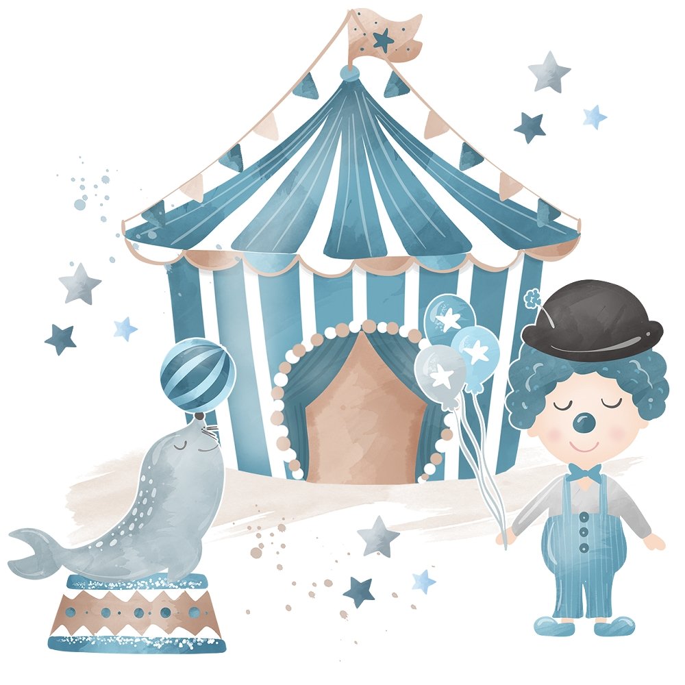 The Watercolor Circus Scene 1 Fabric Panel is part of the Watercolor Circus Fabric Collection printed by Sew Creative Fabrics. Digitally Printed on 100% cotton. This panel is available in 6 different sizes: