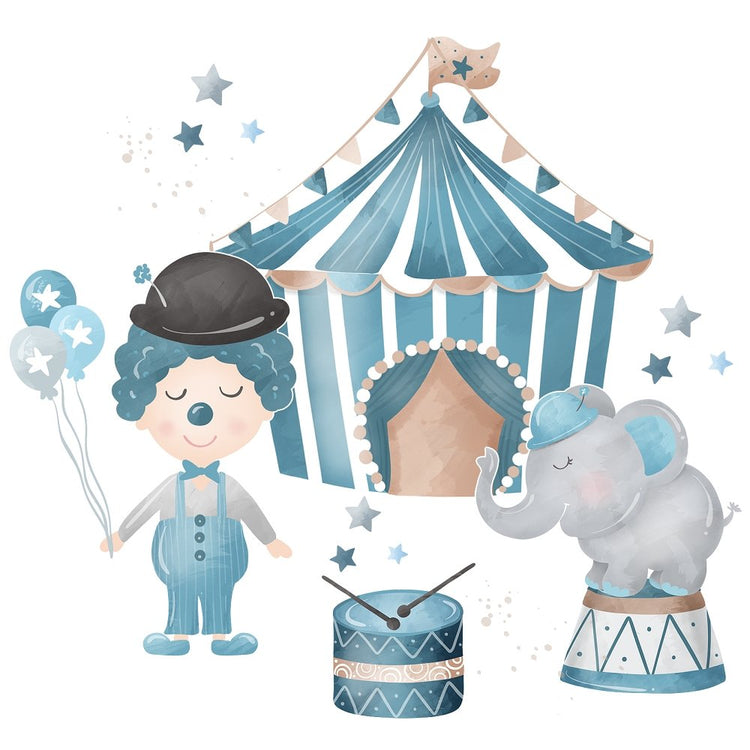 The Watercolor Circus Scene 5 Fabric Panel is part of the Watercolor Circus Fabric Collection printed by Sew Creative Fabrics. Digitally Printed on 100% cotton. This panel is available in 6 different sizes: