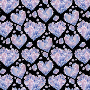 The Black Watercolor Crystals & Hearts Fabric is part of the Unicorn Fantasy Fabric Collection printed by Sew Creative Fabrics. Digitally Printed on 100% cotton.