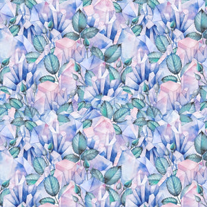 The Watercolor Crystals & Rose Leaves Fabric is part of the Unicorn Fantasy Fabric Collection printed by Sew Creative Fabrics. Digitally Printed on 100% cotton.