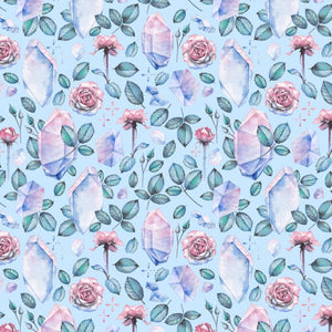 The Blue Watercolor Crystals & Rose Stems Fabric is part of the Unicorn Fantasy Fabric Collection printed by Sew Creative Fabrics. Digitally Printed on 100% cotton.