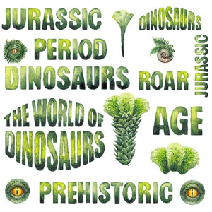 The White Watercolor Dinosaur Words & Plants Fabric is part of The World of Dinosaurs Fabric Collection printed by Sew Creative Fabrics. Digitally Printed on 100% cotton.